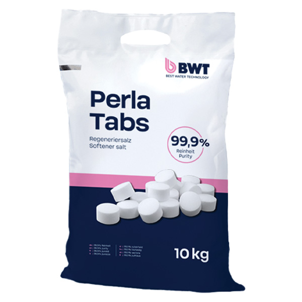 BWT Perla Tabs er høykvalitets salttabletter utviklet for trygg og effektiv regenerering i kalkfilter. Med en renhetsgrad på 99,9 % sørger tablettene for jevn oppløsning uten klumping, og opprettholder optimal drift uten å skade systemet. Tilgjengelig i praktisk 10 kg pose for enklere håndtering, eller som 25 kg sekk for større forbruk. Perfekt for bruk i BWT Perla-serien og andre kompatible kalkfiltre i husholdningen.