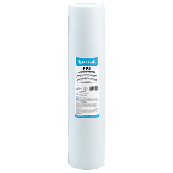 Ecosoft PP sedimentfilter BB20 5 micron er et høykapasitets melt-blown filter laget av polypropylenfiber. Filteret gir effektiv grunnbeskyttelse ved å fjerne grove partikler som rust, sand og silt, og sikrer renere vann og lengre levetid for nedstrøms filtre og utstyr.
